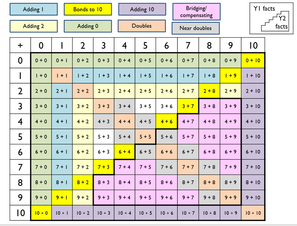 To help them tackle more complex maths problems as they move through the school. It is really important that children have good fluency in their basic number facts. These are taught at Years 1-2 for addition and 3-4 for multiplication.